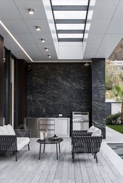 Территория имеет достаточно большую площадь и включает в себя: закрытая парковка на 2 авто и гостевая на 5 автомобилей, ландшафтный дизайн территории со своим автополивом, летняя уютная столовая зона с выдвижной маркизой, летний кинотеатр размером 3*5 метров, зона фонтанов, переливной подогреваемый бассейн Infiniti, с баром, фонтанами, противотоком и шикарной панорамой!!!