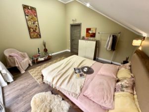 На цокольном этаже гостевая 2-х комнатная изолированная квартира, с новым ремонтом мебелью и техникой, своим санузлом.