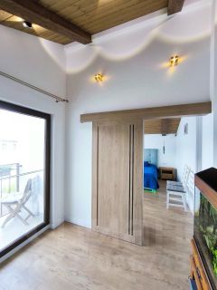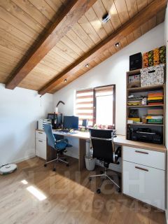 Потолки - на 1м этаже - натяжные, на 2м этаже -из натурального дерева, в том числе и продольные балки (см.фото).