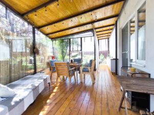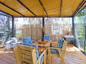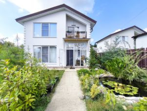 В доме 4 жилых комнаты, кухня-гостиная, два санузла с душевыми трапами, небольшая кладовка под лестницей, бойлерная, балкон, застекленное крыльцо и терраса.