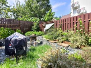 А так же есть небольшой пруд с карпами койи и искуственная речка.