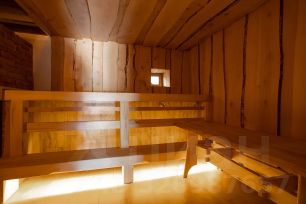 На территории расположен банный комплекс с зоной СПА, круглогодичный подогреваемый бассейн с подсветкой и противотоком, зона отдыха с мягкой мебелью и ВВQ, а также крытый гараж на два машиноместа.