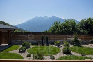 На втором этаже расположены полноценные две гостевые спальни и одна хозяйская мастер-спальня. Панорамное остекление в пол с видом на горные хребты Кавказского Заповедника. В доме выполнен ремонт по индивидуальному проекту от лучшего в России дизайнерского бюро. Использованы высококачественные материалы. Мебель и техника привезены на заказ.