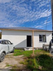 Дом имеет три комнаты и кухню гостиную. Крыша покрыта металлопрофилем, а фасад под утеплителем и декоративной штукатуркой.