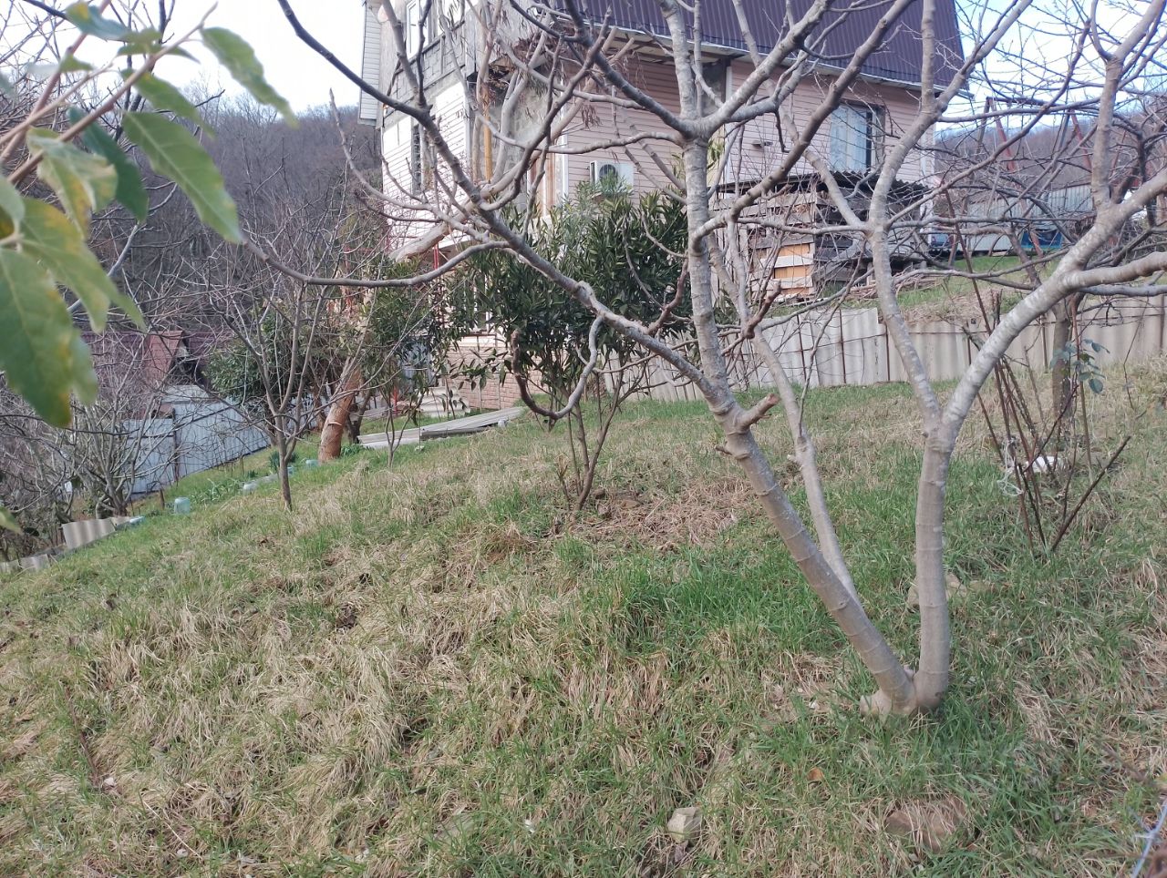 Во дворе плодовые деревья: яблони, хурма, слива, грецкий орех, пекан, инжир, фейхоа, калина, лавровый лист и др.
