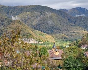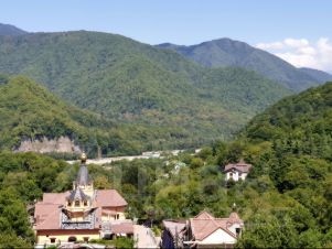 Фронтальный вид с участка - на каньон долины реки Шахе и горный хребет Фишт. Рассмотрю продажу обоих участков с корректировкой общей стоимости. Продажа от собственника,без обременений. Помогу с оформлением сделки и получением свидетельства о собственности.