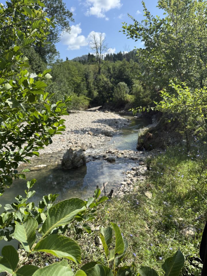 На въезде в мини-поселок видеонаблюдение и раздвижные автоматические ворота. Все 35 гектар огорожены по периметру, граничащему с водоохранной зоной реки Хобза, купели которой в 300 метрах от участка выглядят в жару как один из решающих факторов при выборе земли для сада и жизни. Есть электричество, из других коммуникаций соседи делали скважину для чистой воды и септик в качестве канализации. Секвойевая роща и несколько тысяч поодоносящих деревьев - делают атмосферу в поселке - выдающейся