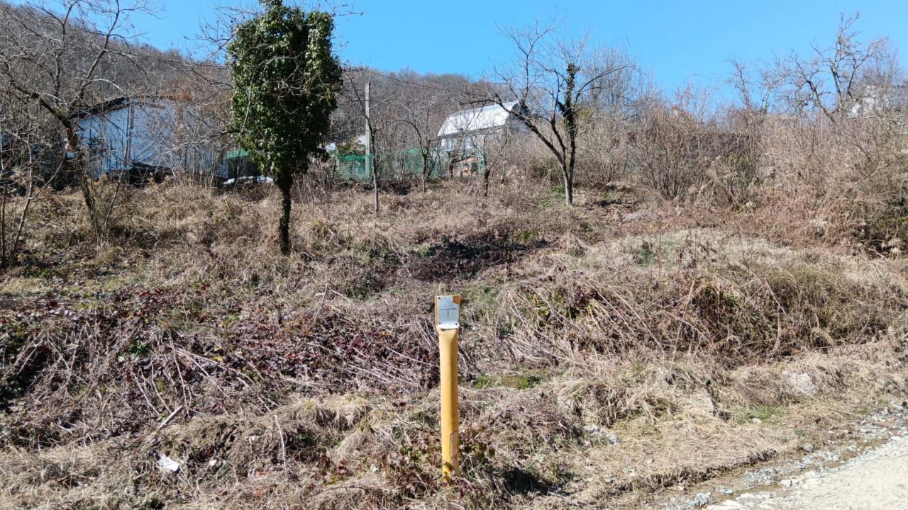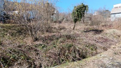 участок 6,6 сотки, с небольшим уклоном, фруктовыми деревьями