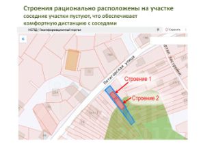 Соседние участки пустуют, есть перспектива их выкупа. В настоящее время ближайшие строения находятся на комфортном отдалении.