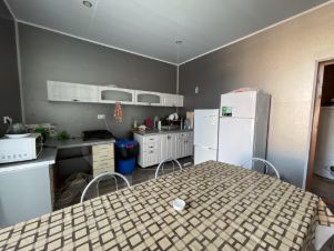 На 1 этаже: кухня хозяйская, 2 комнаты хозяйские (можно использовать под трехместные номера) и 2 номера без отделки полов и потолков.