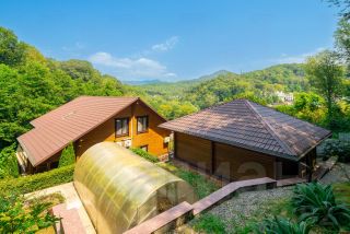 Частное имение премиум-класса, интегрированное в лесной ландшафт с панорамными видами на горные хребты.