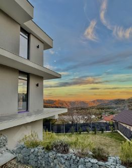 Участок зонирован, вид панорамный, соседи внизу. Снежные горы и Кусочек моря в качестве бонуса)))