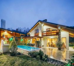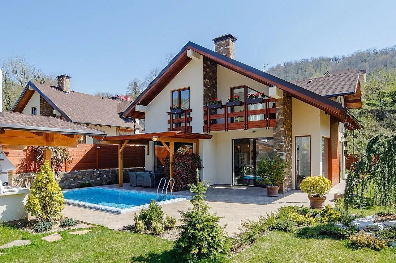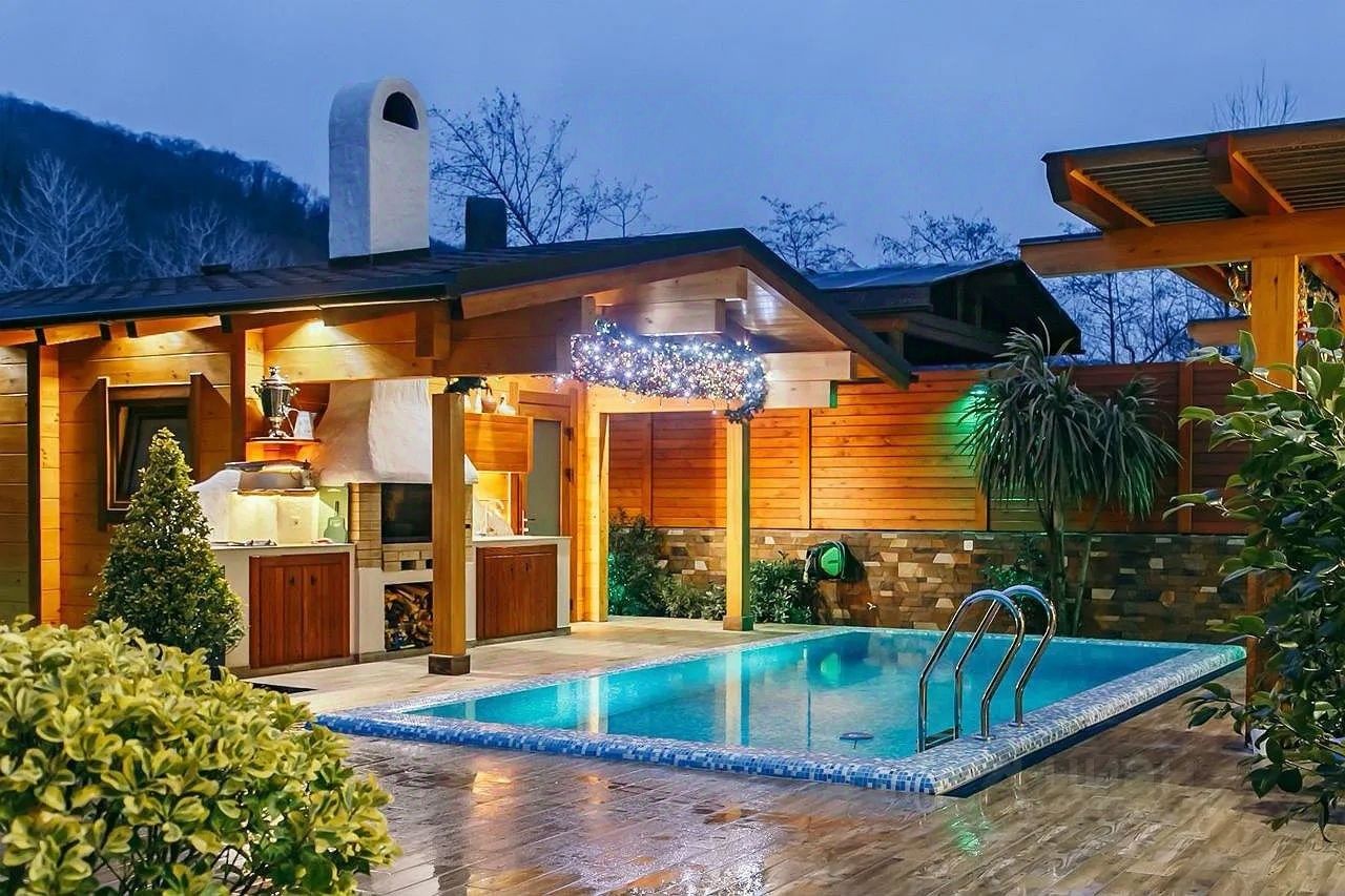 На участке у дома просторно расположена парковка, гараж для вашего автомобиля. Но настоящим украшением является большой переливной бассейн с водопадом, окруженный зеленым садом с плодовыми деревьями. Здесь также имеется уютный гостевой домик и летняя кухня с зоной барбекю, где вы сможете проводить время с семьей и друзьями.