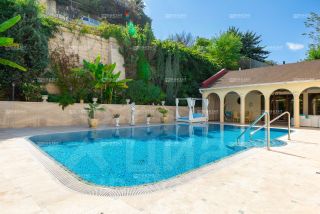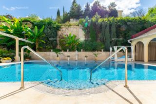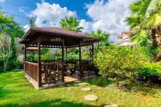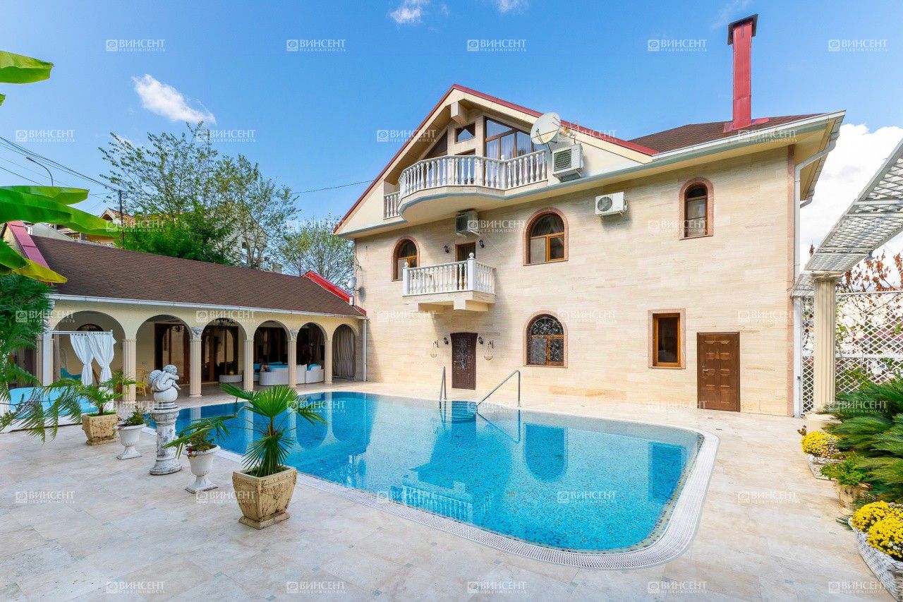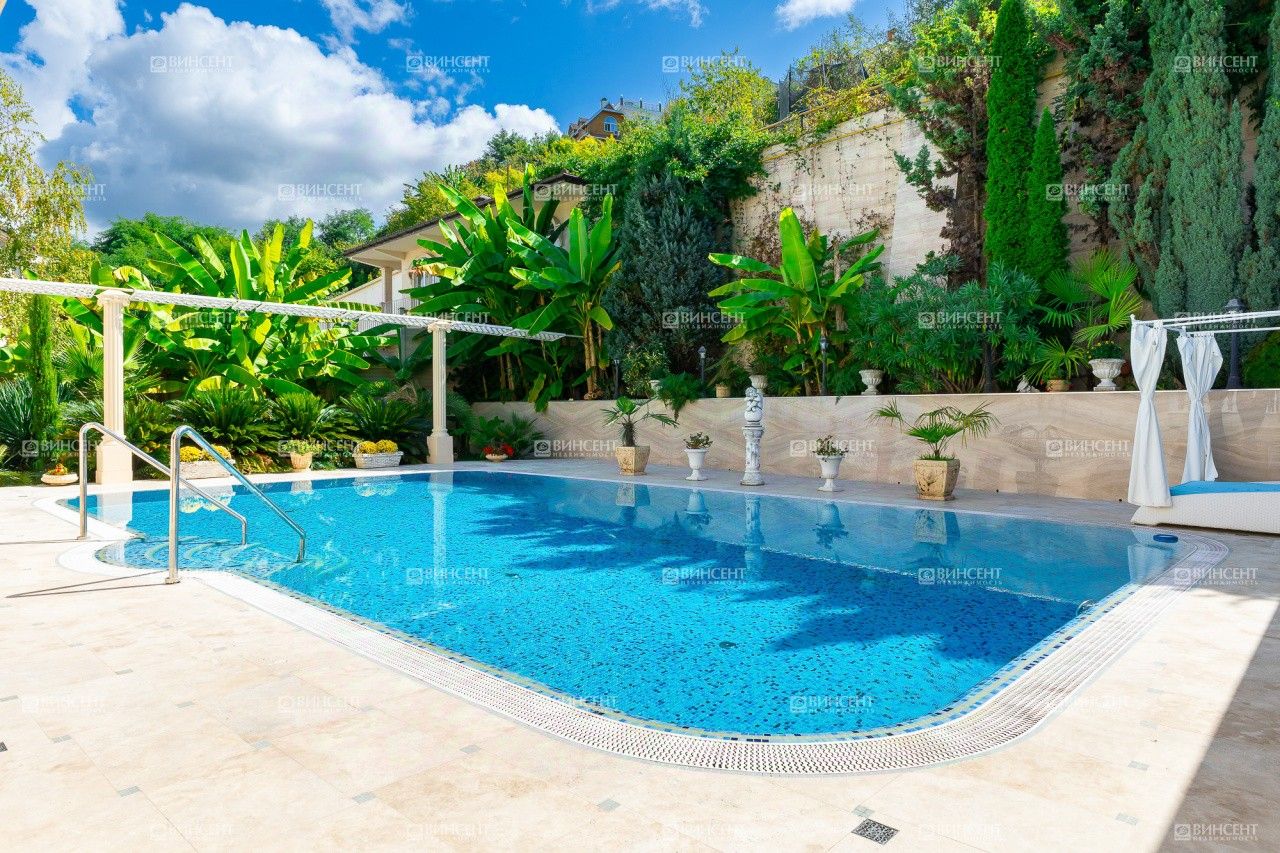 Общая площадь виллы — 648 м², участок — 13 соток. На территории выполнен ландшафтный дизайн, есть большой открытый бассейн с подогревом, летний домик с сауной, зона барбекю и гараж. Пространство продумано для отдыха всей семьи и приёма гостей.