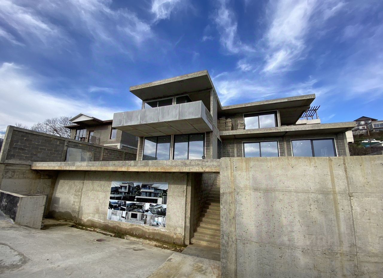На сегодня построено на 55-60%. Полностью коробка дома, алюминиевыми раздвижными окнами, гараж и дополнительная квартира к дому в черновом состоянии.