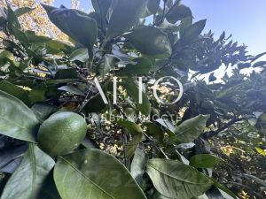 на участке высажены фруктовые деревья, огромное количество мандарин, инжир, хурма