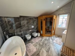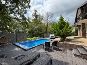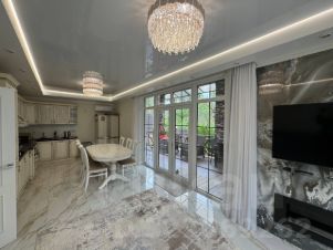 Отапливается за счет тёплых водяных полов от газового котла, в каждой комнате кондиционер. Автоматические ворота. На территории имеется техническое помещение, где установлен накопитель воды на 3000 литров и места для хранения лыжного инвентаря.