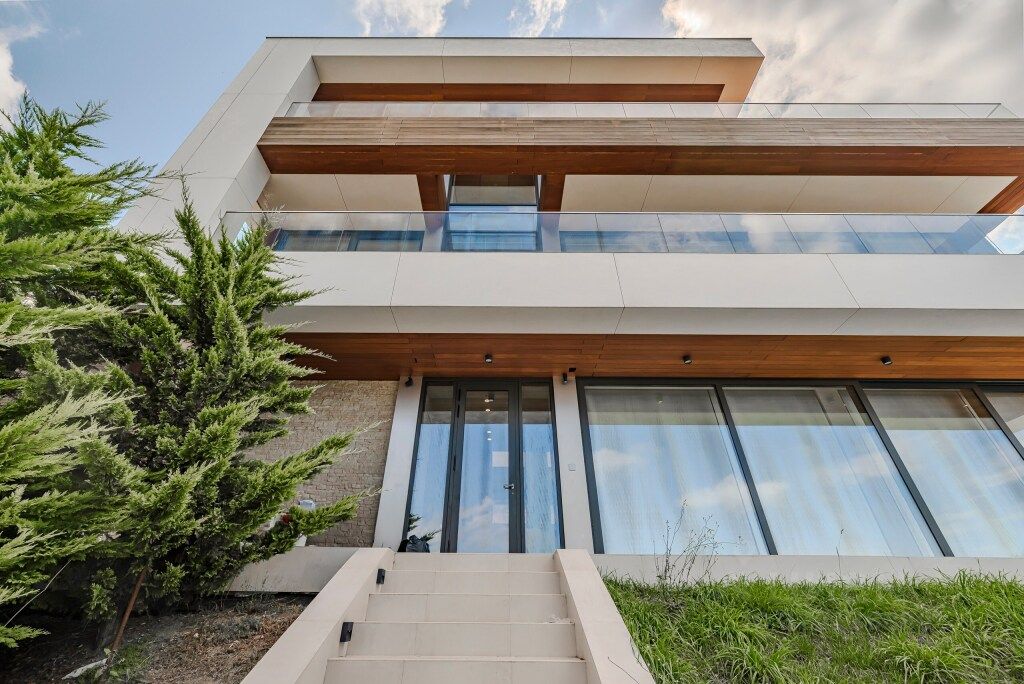 Планировка включает: на первом этаже — огромную светлую кухню-гостиную, гардеробную, санузел и техническое помещение с отдельным входом. Второй этаж занимает просторная мастер-спальня с собственным санузлом и гардеробной, а также вторую мастер-спальню. На третьем этаже расположены две мастер-спальни с выходом на террасу-балкон, откуда открываются завораживающие виды.