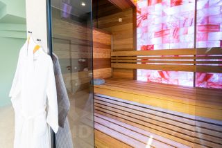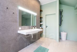1-й этаж: кухня-гостиная с выходом к бассейну с подогревом, подсветкой и искусственным течением, санузел с душем и выходом к бассейну, сауна с отделкой канадским кедром и гималайской солью, спилом можжевельника, гардеробная, котельная, теплый пол по периметру; пол - керамогранит (Италия)