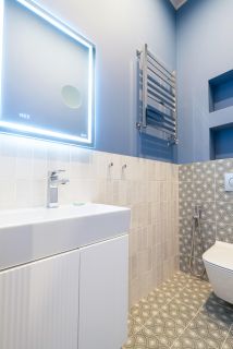 Сантехника: унитазы, биде, раковины, ванная - Италия; душ/смесители -Германия.