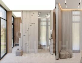 1.Входная группа: гараж на 2 автомобиля, ворота секционные 4 Х 3,3 м с электроприводами и итеграцией в систему умного дома, входная дверь PORTALE c интеллектуальной системой доступа.