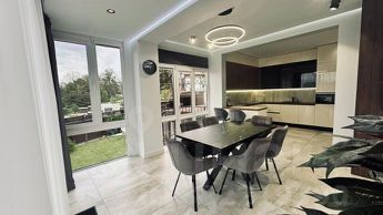 На первом этаже - светлая и функциональная кухня с просторной обеденной зоной, из которой открывается живописный вид на террасу; большая светлая гостиная; уютная спальня; просторный санузел.