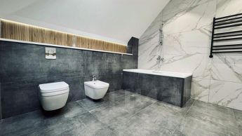 На втором этаже - 3 уютных спальни в светлых тонах; терраса с видом на море; ванна с окном.