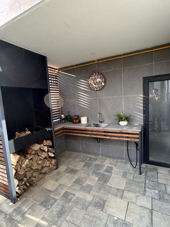 Территория не большая, но удобная, на 1 уровне есть мангальная зона, второй и третий уровни имеют просторные террасы, на которых можно прекрасно провести время,,любуясь незабываемым видом.