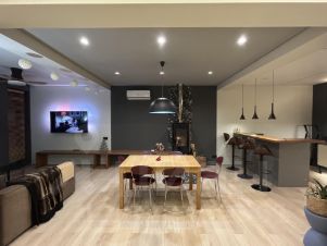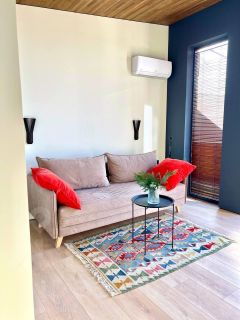 Дом новый, со свежим авторским ремонтом, в отделке использованы преимущественно натуральные материалы, много мебели из массива дуба, выполненной на заказ непосредственно для этого интерьера. В доме пять спален, самая большая из них - детская (игровая), 2 оборудованы двуспальными кроватями, остальные 2 могут использоваться как гостевая или кабинет.