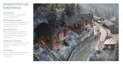 Резиденция расположена в самой закрытой и не доступной для посторонних локации на высоте 1100 м на уровнем моря. Закрытая охраняемая территория с видеонаблюдением, системой умной безопасности, охраной, КПП, обсуживающим персоналом.