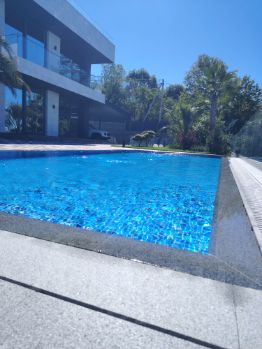 12-метровый бассейн, гармонично вписанный в ландшафт с удивительным озеленением. Не просто бассейн, а центр притяжения в жаркие дни.