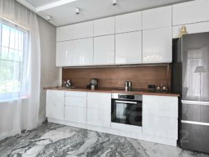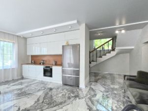 Простор и комфорт: Дом с современным дизайнерским ремонтом, 4 комнаты, просторная кухня-гостиная, оборудованная техникой и большой обеденной зоной на 8 человек.