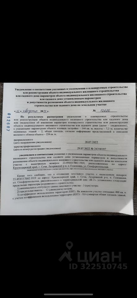 Продается земельный участок правильной формы 4 сотки, на участке имеется подключение 15 кВа, газ, вода по границе, так же имеется разрешение на строительство и проект (23:49:0117002:1919)