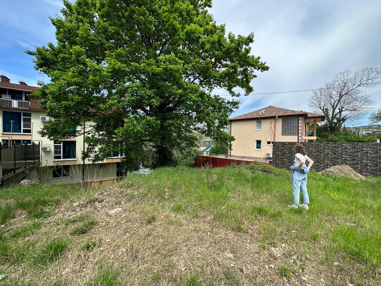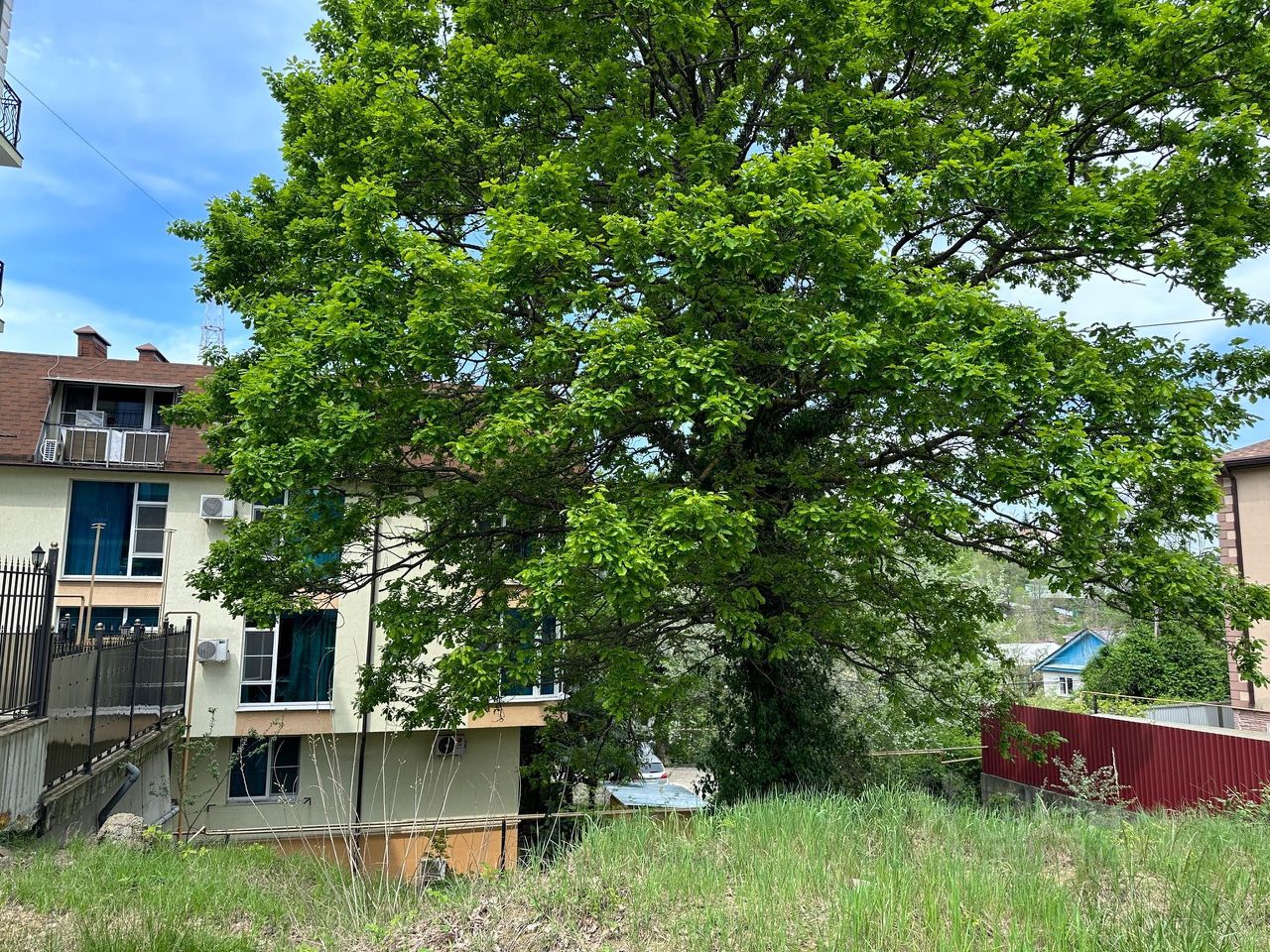 Участок с дубом расположен на возвышенности ровный. Есть электричество, колодцы подключения воды и канализации. Есть разрешение на строительство дома. Хорошая дорога.