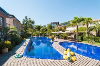 Большая благоустроенная территория, оформленная каскадами, ландшафтное озеленение, фонтан * комплекс находится под круглосуточной охраной и видеонаблюдением, что гарантирует вашу безопасность и уединение.