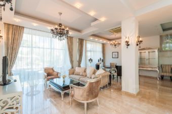 Вилла с дизайнерской отделкой, дорогой мебелью и техникой ведущих зарубежных производителей.