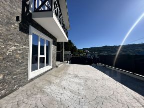 Дом расположен на тихой тупиковой улице, в окружении всего нескольких соседей и живописной природы, что гарантирует уединение и спокойствие. Из окон и балконов открываются завораживающие панорамные виды на горы и море — настоящая мечта для любителей гармонии с природой.
