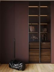 Отделка: гибкая керамика Рhоmi, клинкерный кирпич, лиственница, каленое стекло. алюминиевое остекление.