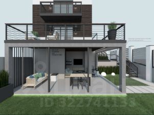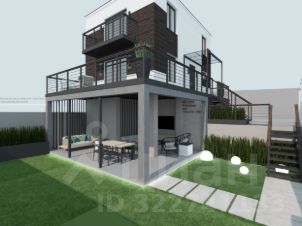 Площадь дома 100 кв метров + терраса 27 кв метров + зона патио под навесом террасы + бытовка под домом.