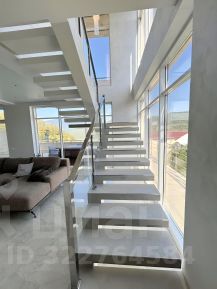Лёгкая парящая лестница со стеклянным ограждением — стильный акцент интерьера.