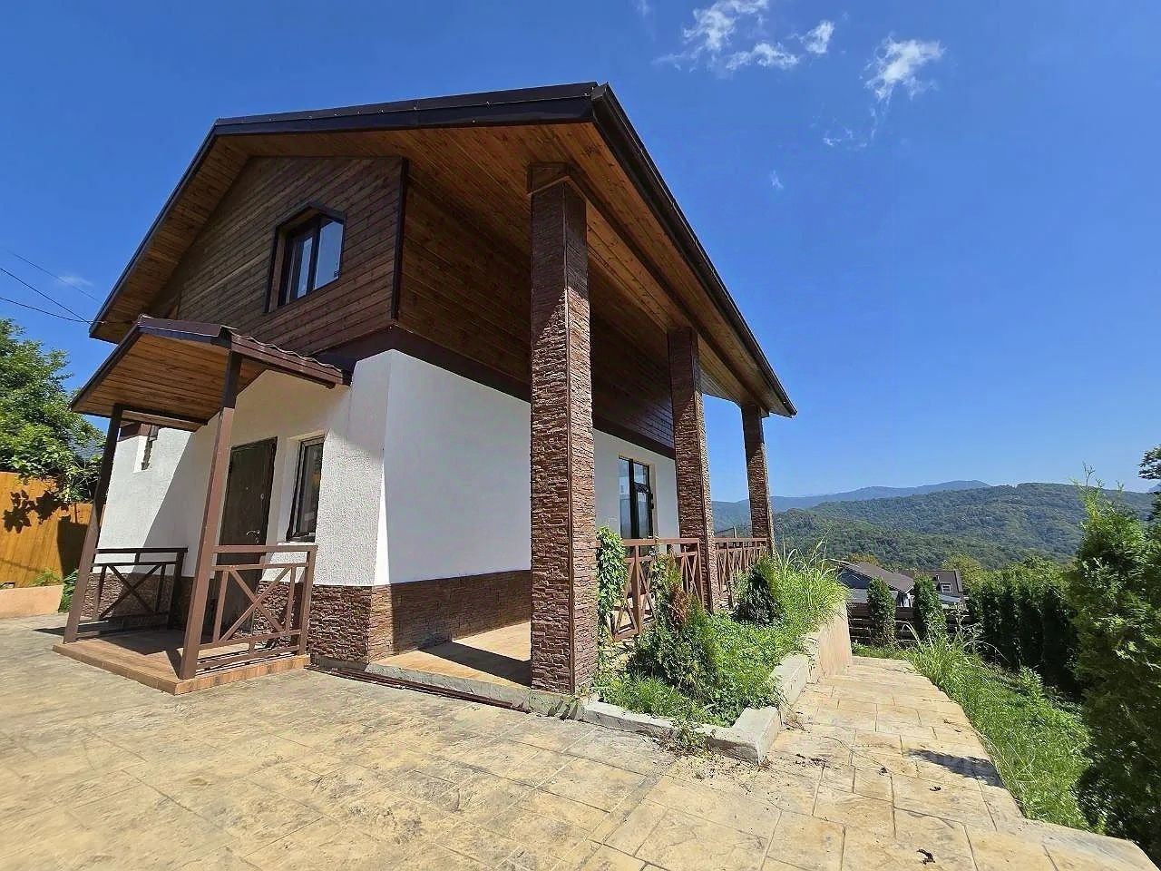Вид на века: Просторные спальни на втором этаже с балконами открывают захватывающий дух панорамный вид на горные хребты и долины. Просыпаться с такой картиной — бесценно.
