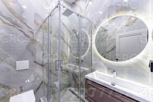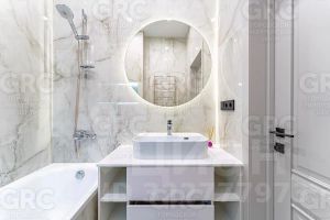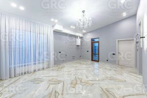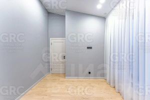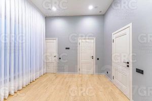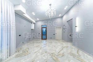 Планировочное решение: три спальни, кухня - гостиная с выходом на террасу, два санузла. Высота потолка составляет от 3.5 метра.