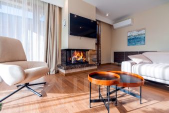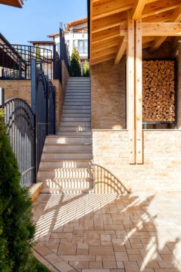 Поднимаясь на второй этаж нас встречает - входная группа, большая кухня-гостиная с прекрасным камином и видовым балконом, санузел и кладовая.