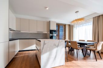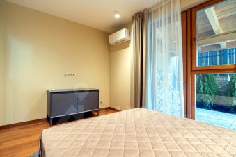 На первом этаже дома расположены большая кухня соеденненная с гостинным залом с прямым выходом к бассейну, санузел с отпительной котельной и двумя прекрасными спальнями, из которых также есть дополнительный выход на предомовую территорию.