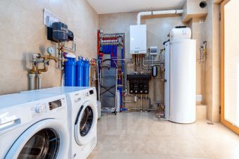 Планировка здания: 4 спальные комнаты, 2 кухонные зоны, 3 санузла, котельная,