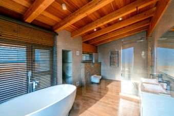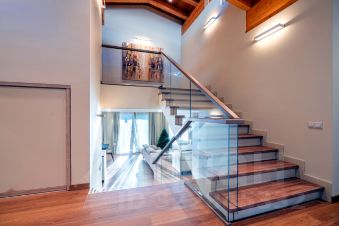 Поднявшись на третий этаж мы видим, что он выделен для отдельной хозяйской спальни с собственной ванной комнатой, балконом и гардеробной.