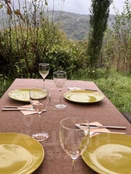 Большой навес, усыпанный виноградом, и беседка с панорамным видом на горы.