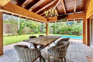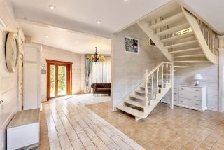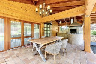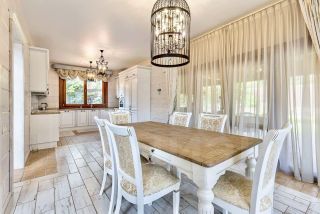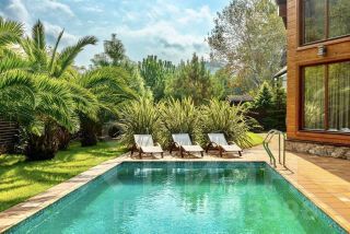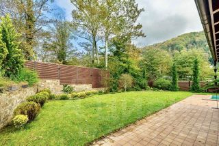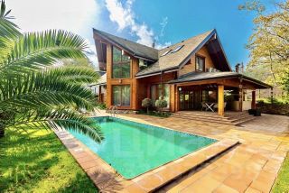 На участке площадью 11 соток выполнено ландшафтное озеленение, есть бассейн, баня и зона отдыха. Территория ухоженная, с удобным заездом и парковкой.