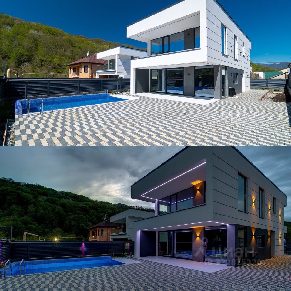 К продаже предлагаются два рядом стоящих дома из трёх ( один продан )в микрорайоне Мацеста. Измайловская 21/1Б Район отличается развитой инфраструктурой: большая сельскохозяйственная ярмарка, рынок, несколько супермаркетов, школа, спортивная школа, футбольные поля высокого уровня, большая прогулочная набережная у реки. Ровное место, идеальный подъезд, респектабельное соседство. В 100 метрах расположен национальный парк, за 5-10 минут можно выйти к чистой, горной реке. До моря с чистейшим пляжем, 7 минут Площадь каждого 220 кв.м., з/у 5 соток. К крайнему дому можно добавить ещё 3 сотки. Все коммуникации центральные: свет, вода, канализация, газ. Отделка только из премиальных материалов. Фасад керамогранит. Окна - аллюминиевый профиль (Италия) с закалённым, многофункциональным стеклом со специальным напыление , отражающим УФ лучи. У каждого дома выполнен ландшафтный дизайн и установлен бассейн 6Х3 метра с переливной системой. Дома полностью готовы к продаже(документы, внешняя отделка завершена, коммуникации функционируют)