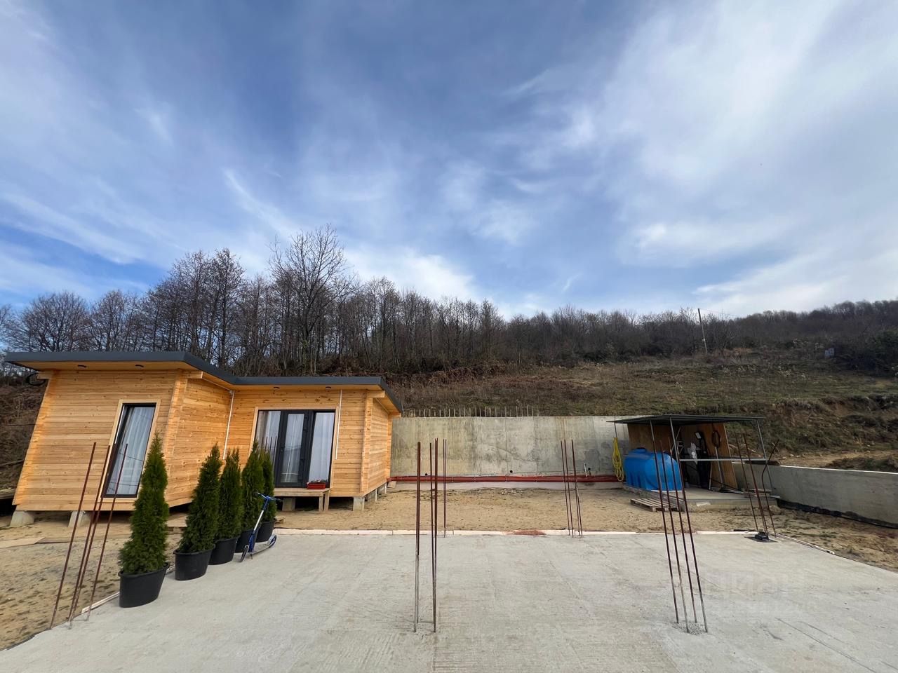 ПРОДАЕТСЯ Недостроенный дом на участке 5 соток!!!! ИМЕЕТСЯ разрешение на строительство и проект(АР, КР). Возведен цокольный этаж с выводом арматуры под колонны. Участок распланировал в два уровня. По периметру возведены подпорные стены (на сваях и с контрфорсами), вдоль участка бетонная ливневка. По периметру проложена дренажная система. Бетонные подъездные пути.